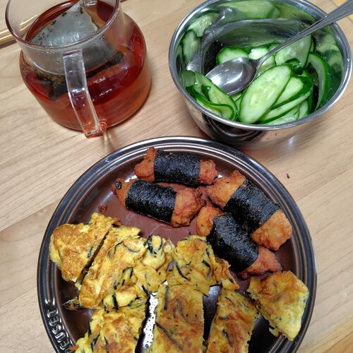 こどもが保育園で濃厚接触者となりました。 本日でやっと、七日間の自宅待機終了。 私もテレワークは一旦おわり、土曜には、一度出勤します。 自宅にあるもので食べつなぎました。 餃子、干物、しょうが焼き…と、冷凍してある食材を使い、乾物や缶詰めを多用…
